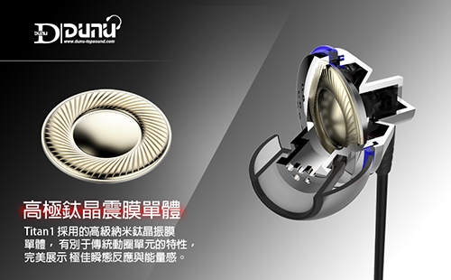 DUNU TITAN1 in ear monitor utilizes the top of the line dynamic transducer with nano class titanium diaphragm. Different from the typical dynamic transducer, it is capable of perfect transient response while retains a nature yet energetic sound - with clear and delicate layering, thick and powerful bass response as well as amazing treble clarity that combined to recreate the impressive ‘live’ feeling of the music recording. The titanium diaphragm has great sonic clarity and transparency, is able to handle high power without distortion and evenly spreads the energy across its surface. Its exceptional fine crafting restores the power and speed back into the instruments presentation with both force and precision to achieve an excellent sound quality. By combining the characteristics of fast transient response similar to balanced armature and the power of dynamic transducer, titanium diaphragm transducer is able to outperform both. That’s TITAN1’s advantage. TITAN1’s main body is made out of metal, ensuring both durability and aesthetic beauty. It also comes with eartips of various designs for maximum isolation and comfort, in order to help the listener to submerge into a perfect musical experience. Other high quality accessories include but not limited to: metal pin, cable guide, and portable storage case – all help to assure the best form and function inside one package.